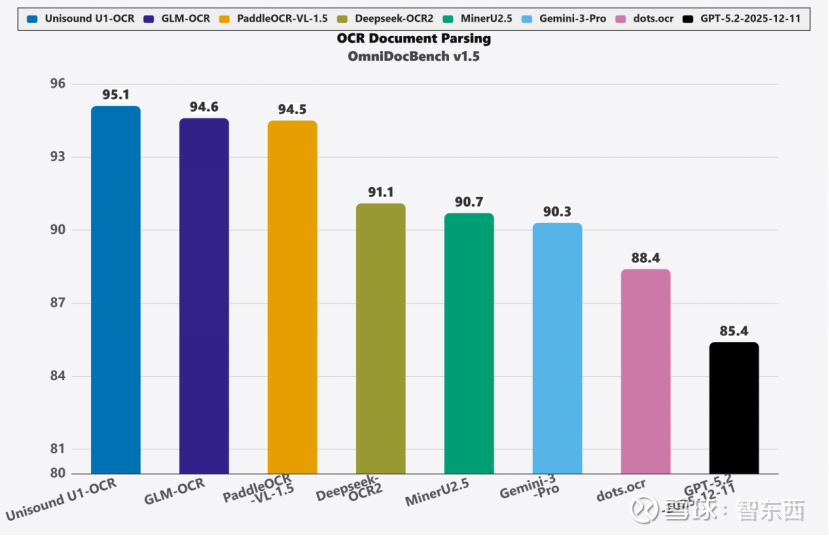 ▲Unisound U1-OCR在OmniDocBench V1.5的评测得分对比