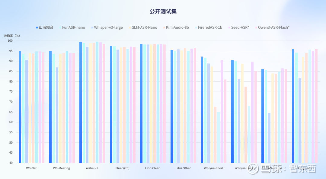 ▲山海·知音2.0在公开测试集显现领先语音识别能力