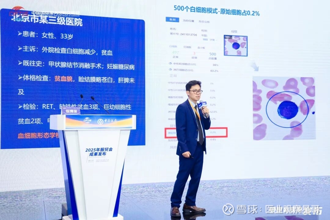 2025年9月12日,2025中国国际服务贸易交易会(简称“服贸会”)现场,北京小蝇科技有限责任公司(下称“小蝇科技”)以“AI+检验,智启新纪元:血涂片全域分析智能体”为主题,成功举办创新成果发布会。作为本届服贸会AI医疗领域的优秀代表,小蝇科技携国内首个IVD(体外诊断)领域人工智能三类医疗器械成果亮相,不仅彰显我国医疗AI检验领域的技术突破,更凭借前沿技术与实践成果,吸引国内外参会代表高度关注,成为服贸会医疗创新板块的焦点。