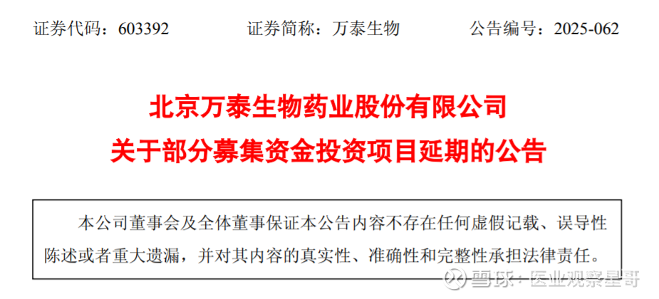 2025年12月13日,万泰生物发布关于部分募集资金投资项目延期的公告。