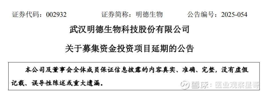 12月13日,武汉明德生物发布关于募集资金投资项目延期的公告。