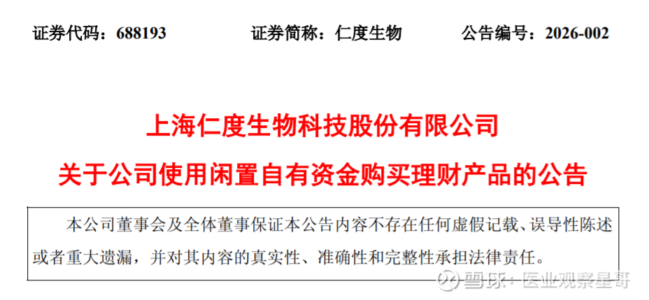2026年01月17日,仁度生物发布关于公司使用闲置自有资金购买理财产品的公告。