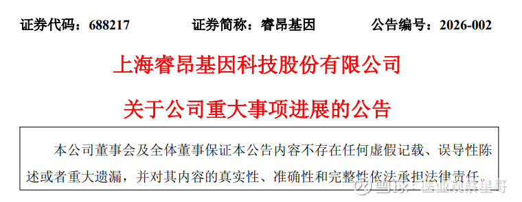 2026年01月24日,睿昂基因发布关于公司重大事项进展的公告。