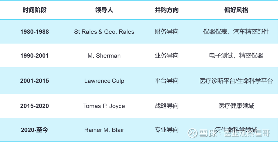 从上表中可以看到,在不同的历史发展阶段和内外部环境变化的驱动下,每一位领导人都有自己的思考与调整,其并购方向和偏好风格未必是最佳选择,但从结果来看,确实是契合了当时丹纳赫发展的需求和长远布局。