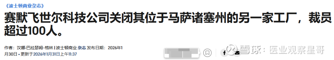 这并非赛默飞世尔科技近期的唯一运营收缩。1月初,公司已宣布计划关闭北卡罗来纳州阿什维尔的一家制造工厂,裁员421人。更早之前,公司在马萨诸塞州已有数次裁员:2025年2月,其在剑桥和普莱恩维尔的工厂裁员约300人;2024年11月,公司关闭了莱克星顿的办公点,并缩减在普莱恩维尔和剑桥的员工规模,累计影响160个岗位。