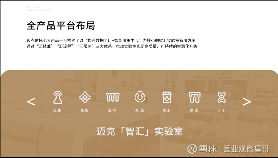 迈克的官网上写得清清楚楚:生化、免疫、血球、凝血、尿液、分子、原材料……全都要。