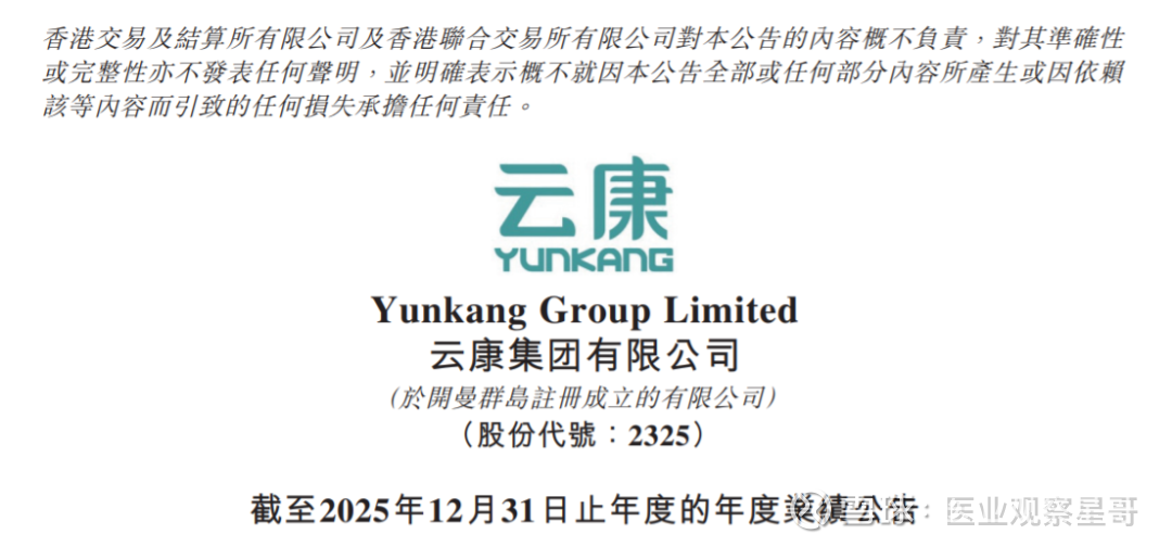 2026年03月31日,云康集团发布截至2025年12月31日止年度的年度业绩公告。