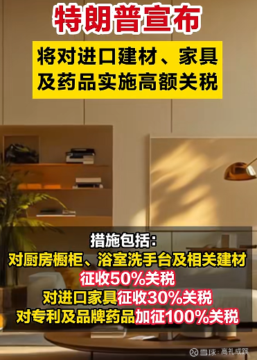 冲击实锤:美国每年 255 亿美元进口家具中我国占比超 40%,关税或导致 A 股出口型陶瓷(如东鹏控股)、板材企业订单下滑。