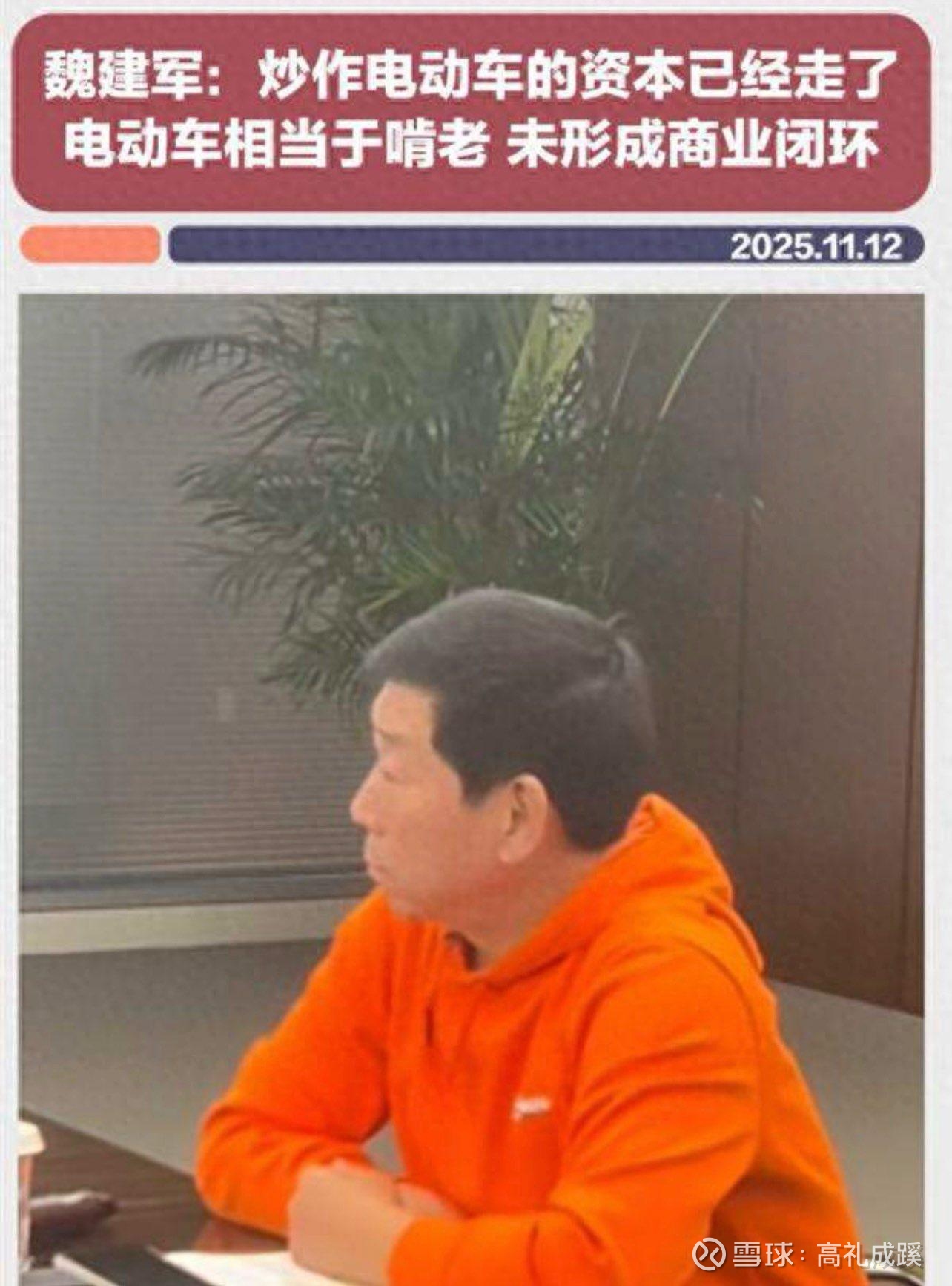 11月12日欧拉预售发布会上,$长城汽车(SH601633)$ 董事长魏建军说得挺实在。他说纯电、增程都没形成商业闭环,10年还这样产业就悬了,总靠国家财政支持就是“啃老”。魏建军还直言,之前纯电车火不少是资本炒作,现在资本赚够钱跑了,好多车企都被资本绑住了手脚。$比亚迪(SZ002594)$$广汽集团(SH601238)$