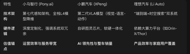 小鹏与理想的垂直整合: 小鹏和理想坚持智驾自研,视其为品牌的核心护城河。对于小马智行来说,小鹏和理想这类“自研派”不仅是潜在的市场竞争对手,更压缩了其作为第三方方案商的市场空间。