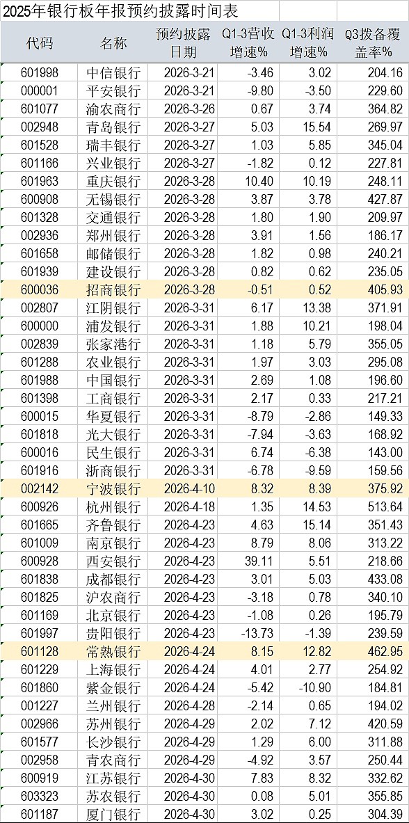 沪深交易所2025年年报预约披露时间已经出来了,整理了银行板块的时间表,其中披露时间较早的是中信银行和平安银行。