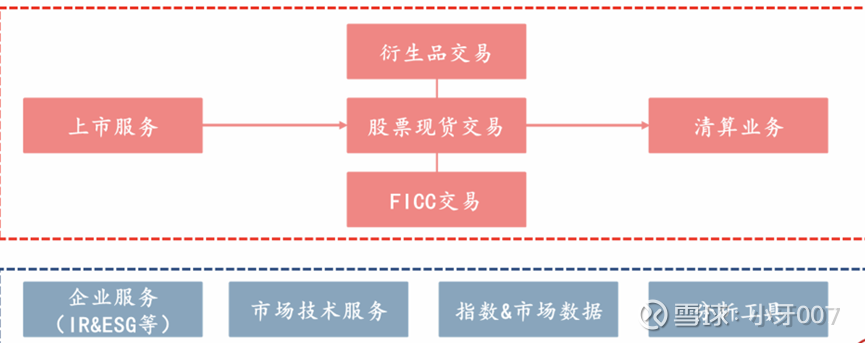 交易所的核心功能即在于链接资产端和资金端,为证券交易提供平台。丰富的交易资产(上市公司股票及金融衍生产品)能够更好地满足投资者需求从而吸引更多资金,而更多的投资者和更活跃的交易也能提升市场流动性、提高资产估值水平从而吸引更多资产聚集。因此,交易所模式具有显著的双边网络效应特征。类比互联网平台,通过鼓励资产上市,吸引资金交易,并将交易所的流量通过收取交易费用、结算费用、上市费用以及提供数据服务等方式变现。
