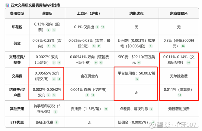 从费率高低上看,港交所的费率最高,其次是东京交易所和纳斯达克交易所。