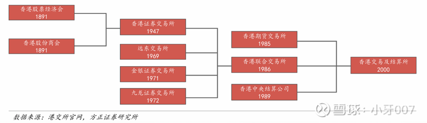 1960年代末和1970年代初香港又先后出现了远东交易所,金银交易所以及九龙证券交易所。在1973年股灾后,出于加强监管的目的,港府开始研究整合四个交易所的可能性。香港联合交易所有限公司于1980年注册,1986年正式开始运作,完成了四所合一。