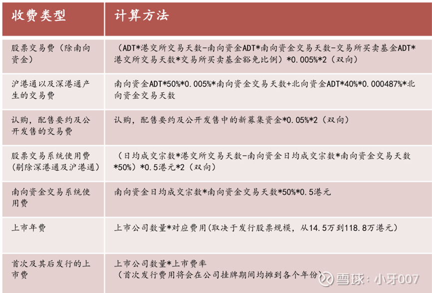 按收费类型拆分,与市场交投强相关的交易费及交易系统使用费、结算、和上市费为港交所重要收入来源。