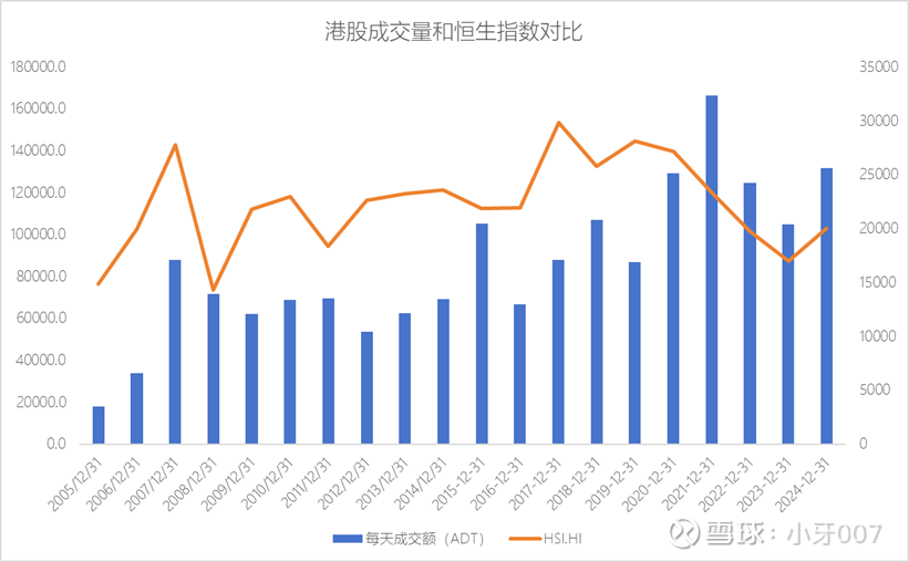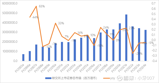 成交额=市值*换手率。从市值来看,联交所上市公司的总体市值(存量+新上市)长期来看呈现增长的趋势。