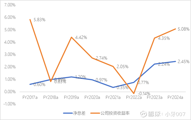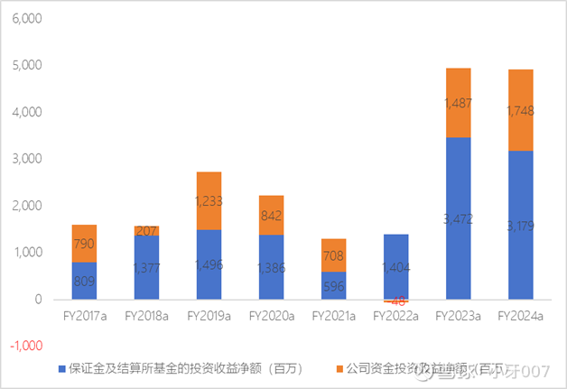 公司的投资净收益来自保证金和自有资金。保证金来源于衍生品业务,公司通过购买债券和定存赚取息差,保证金(现金及现金等价物)整体数额变化不大,息差决定了投资净收益率,而息差与美联储利率高度相关。