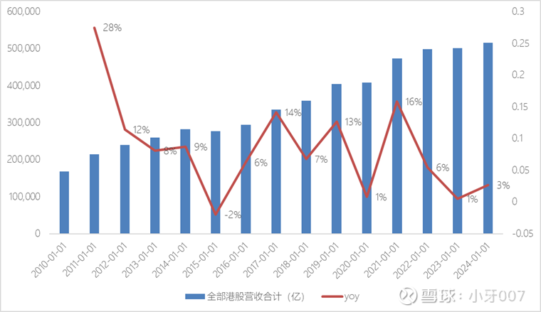 证券化率提升的另外一个重要原因是存量上市公司总体业绩的增长带动市值的增长。港交所上市公司整体收入近五年平均增速约为中单位数左右。