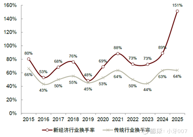 在南向资金带动下,港股市场换手率连续五个季度提升:4Q23-4Q25连续5个季度,港股日均换手率(含南下)分别为0.293%、0.335%、0.373%、0.371%、0.524%,剔除南下资金后换手率为0.251%、0.287%、0.309%、0.311%、0.421%。