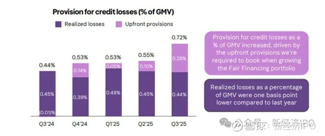 当产品从“短周期、低额度”的支付延后,逐步走向“更长周期、更高利率”的融资分期,风险结构会发生变化。短期BNPL的风险更多来自少数用户的拖欠与欺诈,而长期分期更接近银行信用卡等传统消费金融,风险不仅取决于用户还款意愿,还取决于宏观周期、就业与收入波动。更长的期限意味着更长的暴露时间,任何一个外部变量的变化都可能在时间里被放大。于是,信用损失计提上行就不再像一次性事件,而更像一条可能持续抬升的曲线。