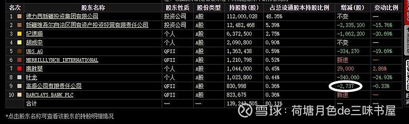 其中:网页链接{UBS AG} 减持 19.69%看起来比较正常;而高盛公司有限责任公司 减持 2737股 就完全不是那么回事儿了,这完全不符合常理;