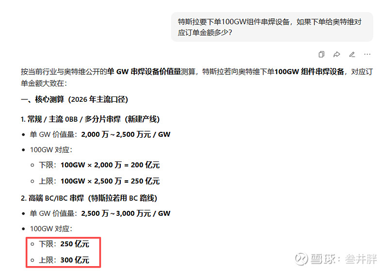 $奥特维(SH688516)$ 重新洗牌,现在整个t/S链的主力手上的货都出了,就剩量化和散户多杀多,机构本来埋伏春节期间订单的结果一直没收到订单。接下来下一波就是看哪个公司率先公布订单拉升,其他T/S链的也会跟着一起冲的。自己搜100gw对应多少金额的订单。如果拿50%份额也有100亿