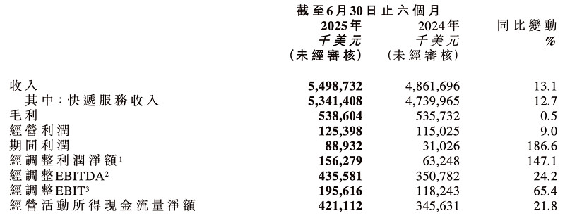 根据中期业绩报告,上半年集团实现总收入55.0亿美元,同比增长13.1%,核心快递业务收入达53.4亿美元,同比增长12.7%,继续巩固其主业优势。