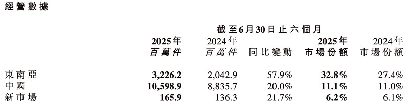 业务端,极兔通过中国、东南亚和新兴市场三大区域的战略协同与互补,构建了高效的全球网络布局,总包裹量实现27%的强劲增长。截至今年6月,公司日均处理包裹量达8120万件,创历史新高,显示出强大的运营能力和市场竞争力。