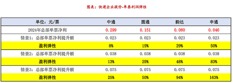 历史经验表明,在成本优化与规模效应的推动下,提价阶段单票利润提升幅度可能超过100%。回顾过往,如2021年随着行业价格战缓和,圆通单票收入从2.2元提升至2.5元,单票利润同比增长约120%。