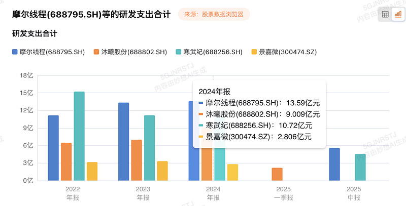 相比之下,沐曦更像是工程导向的打法,两年两代产品落地,聚焦度很高;寒武纪则属于厚积薄发型,2024年思元590是一次集中释放;景嘉微这三年更多还停留在研发与验证推进阶段。
