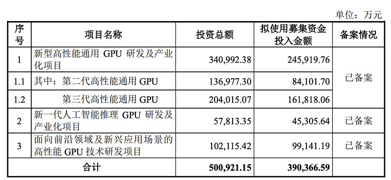 至少87.5%以上的募资额对应具体芯片研发项目,涵盖AI训练、图形渲染、AISoC三个方向,核心是支撑后续新品管线。剩余不到10亿资金用作日常运营的流动资金补充,大部分融资规划去向都是支持研发人员工资和日常开销。