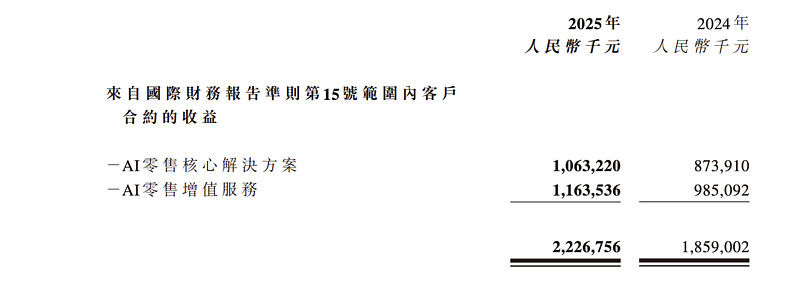 AI零售核心解决方案收入约10.63亿元,同比增加21.7%;AI零售增值服务收入约11.64亿元,同比增加18.1%。两条腿都在走路,而且增速并不依赖单一业务。