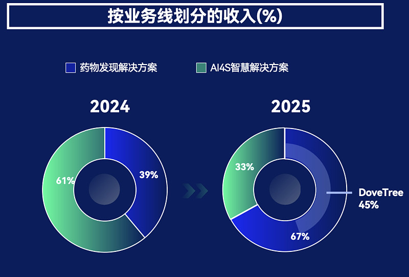 2025年公司实现收入8.026亿元,同比增长201.2%,高于此前市场预期的7.8亿元;其中药物发现解决方案收入5.379亿元,同比增长418.9%,AI for Science智慧解决方案收入2.647亿元,同比增长62.6%。两条业务线同时增长,整体商业化能力在抬升。