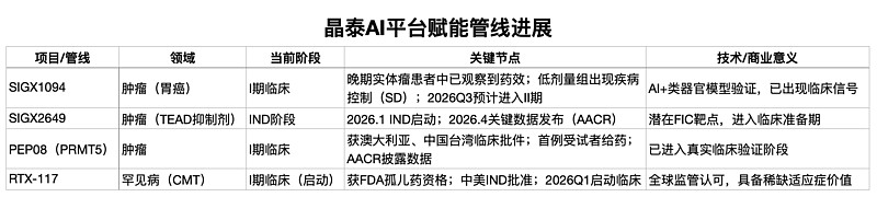 目前公司已赋能和孵化5款以上全球first-in-class或best-in-class创新管线进入临床或IND-enabling阶段。相比单纯讲“AI提升效率”,这些项目的进展直接证明晶泰已经开始参与到药物价值链的后端兑现。