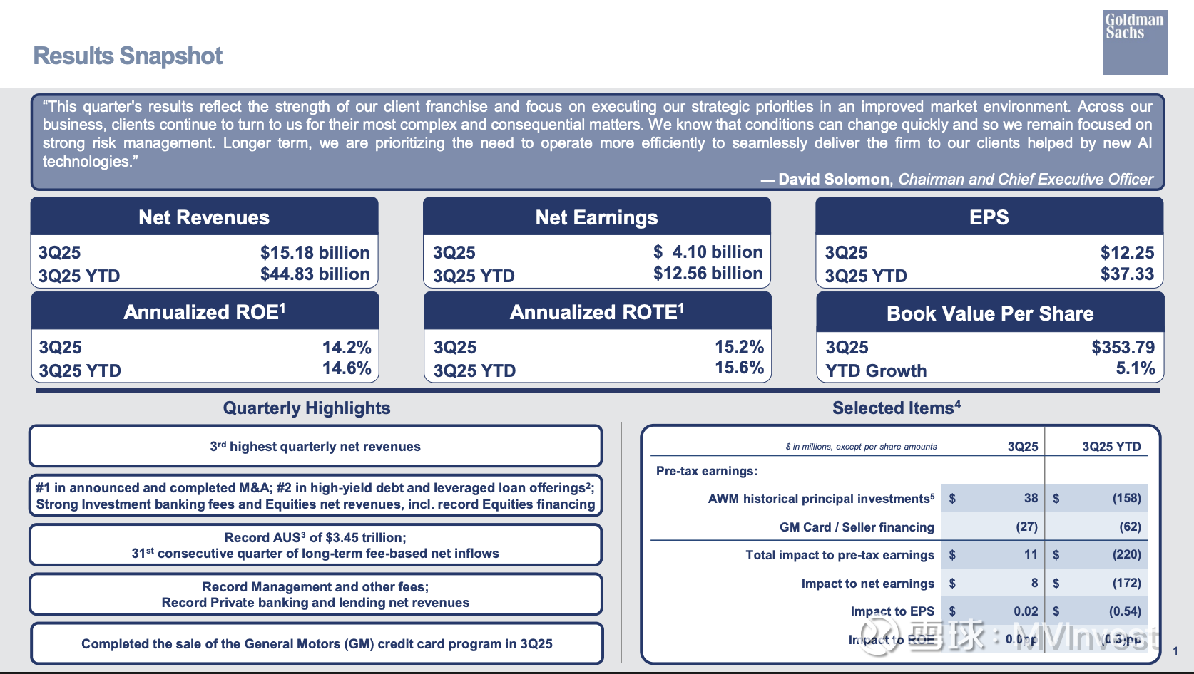 所罗门表示:“我们持续在全球银行与市场业务加大投入,专注于市场份额和客户份额”,并强调资产与财富管理业务的利润率持续改善。