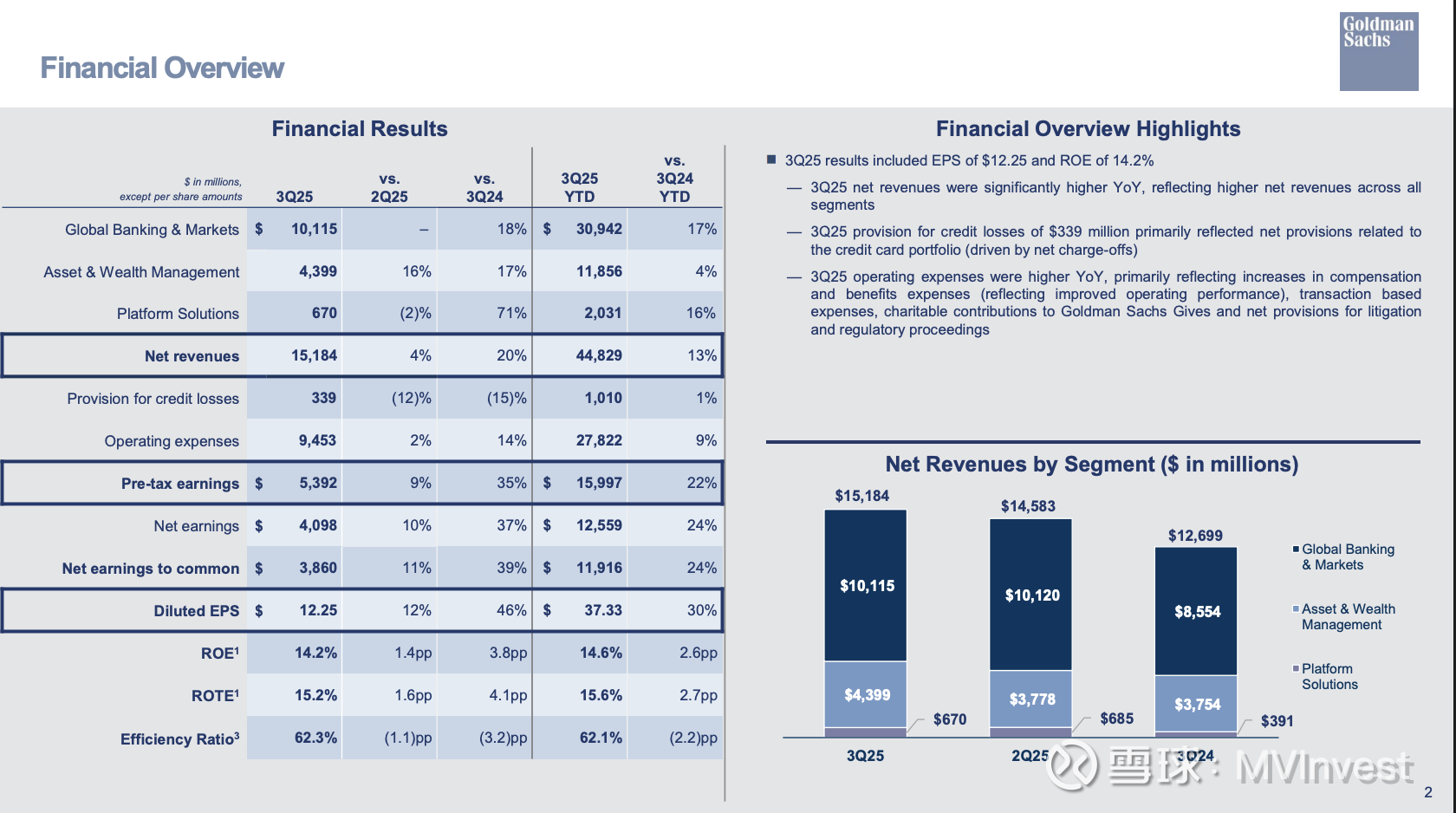 管理层继续聚焦投资银行和财富管理的领先地位,依托稳健的风险管理、高客户参与度及加速的技术应用,推动可持续增长。凭借强劲的财务表现和积极的业务前景,高盛管理层对持续为股东创造稳定价值充满信心。