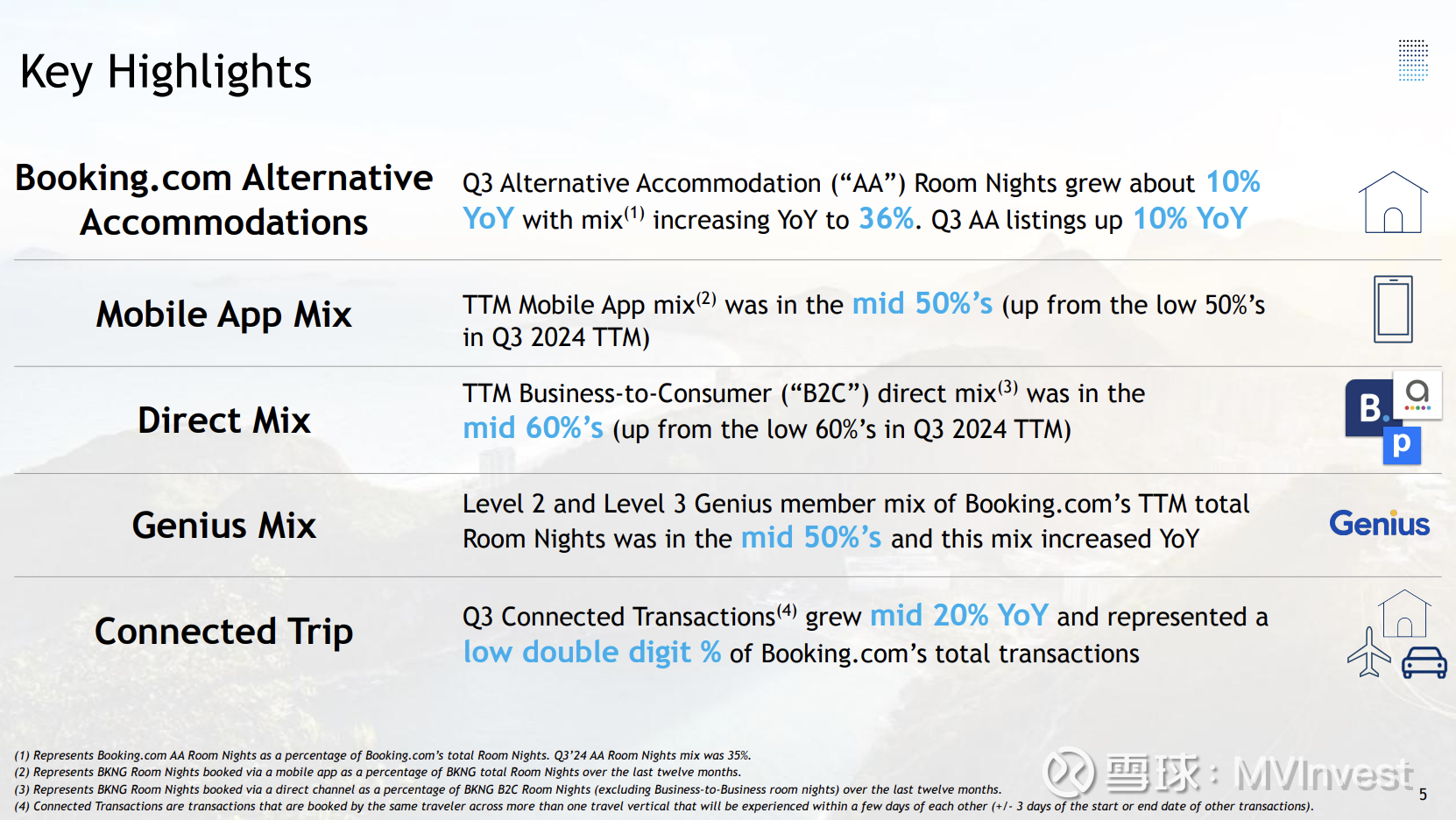 – AI、Connected Trip 与替代住宿 战略持续深化,合作伙伴范围扩大。