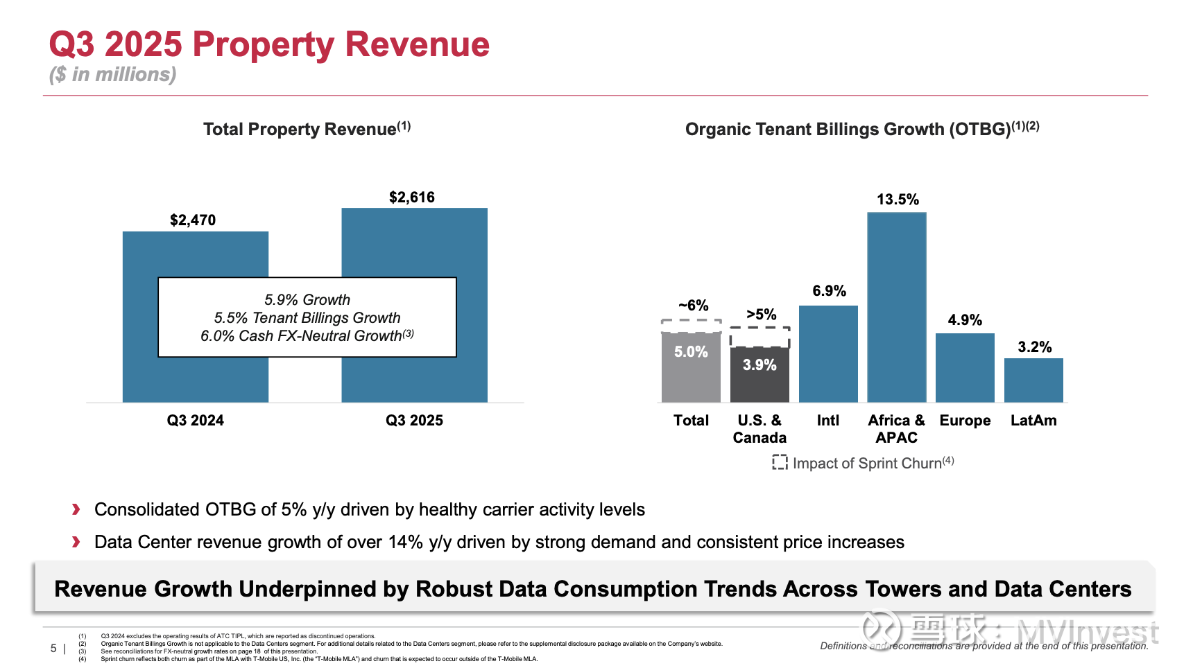 American Tower 管理层强调塔楼与数据中心业务均超预期增长,得益于移动数据需求上升、5G持续部署及AI驱动工作负载的增长。公司上调全年关键财务指标指引,预计经调整每股归属AFFO增长7%。