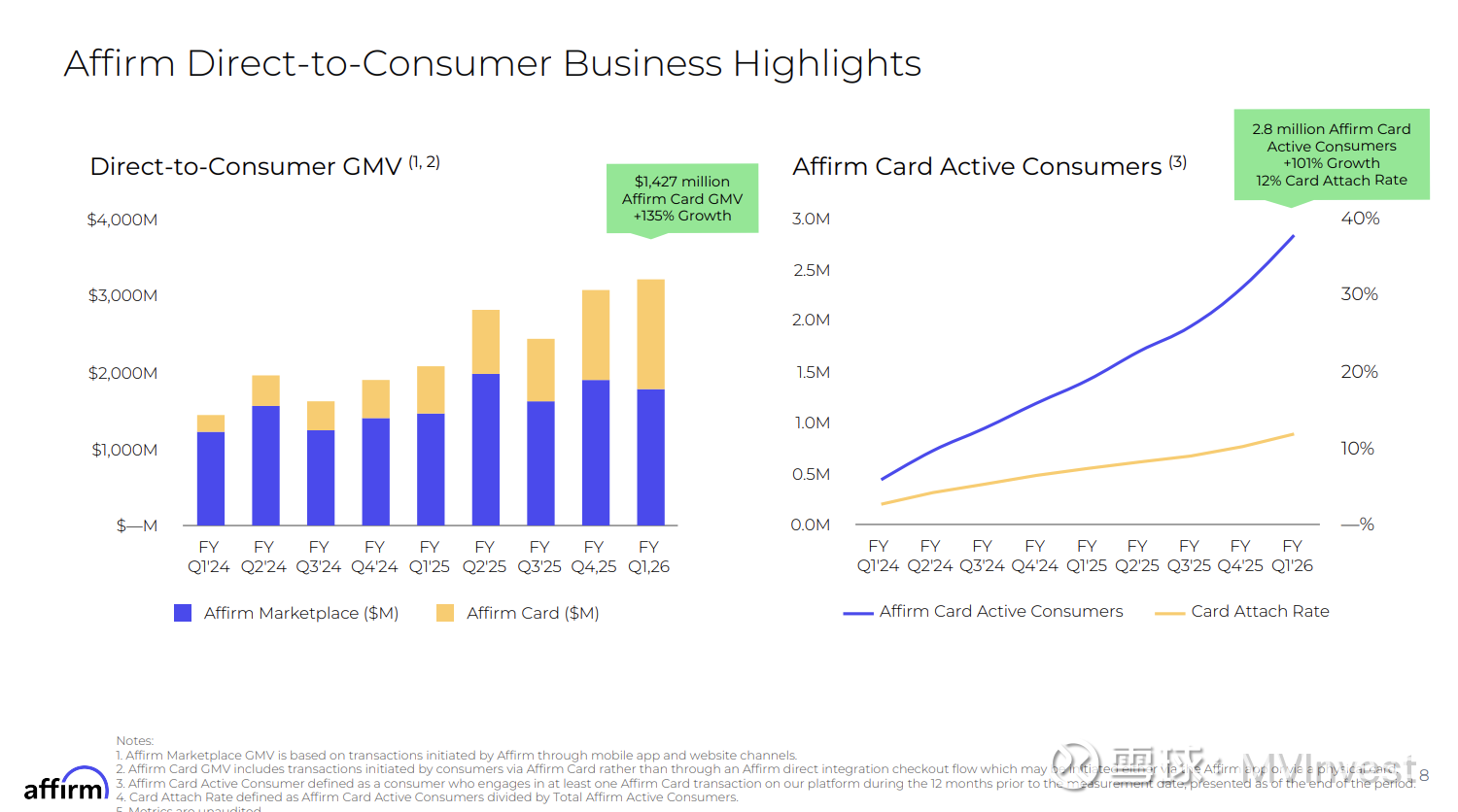 管理层还提到,本季度新增50万张 Affirm 信用卡会员。