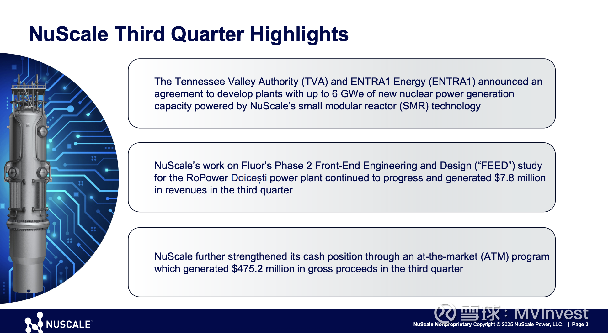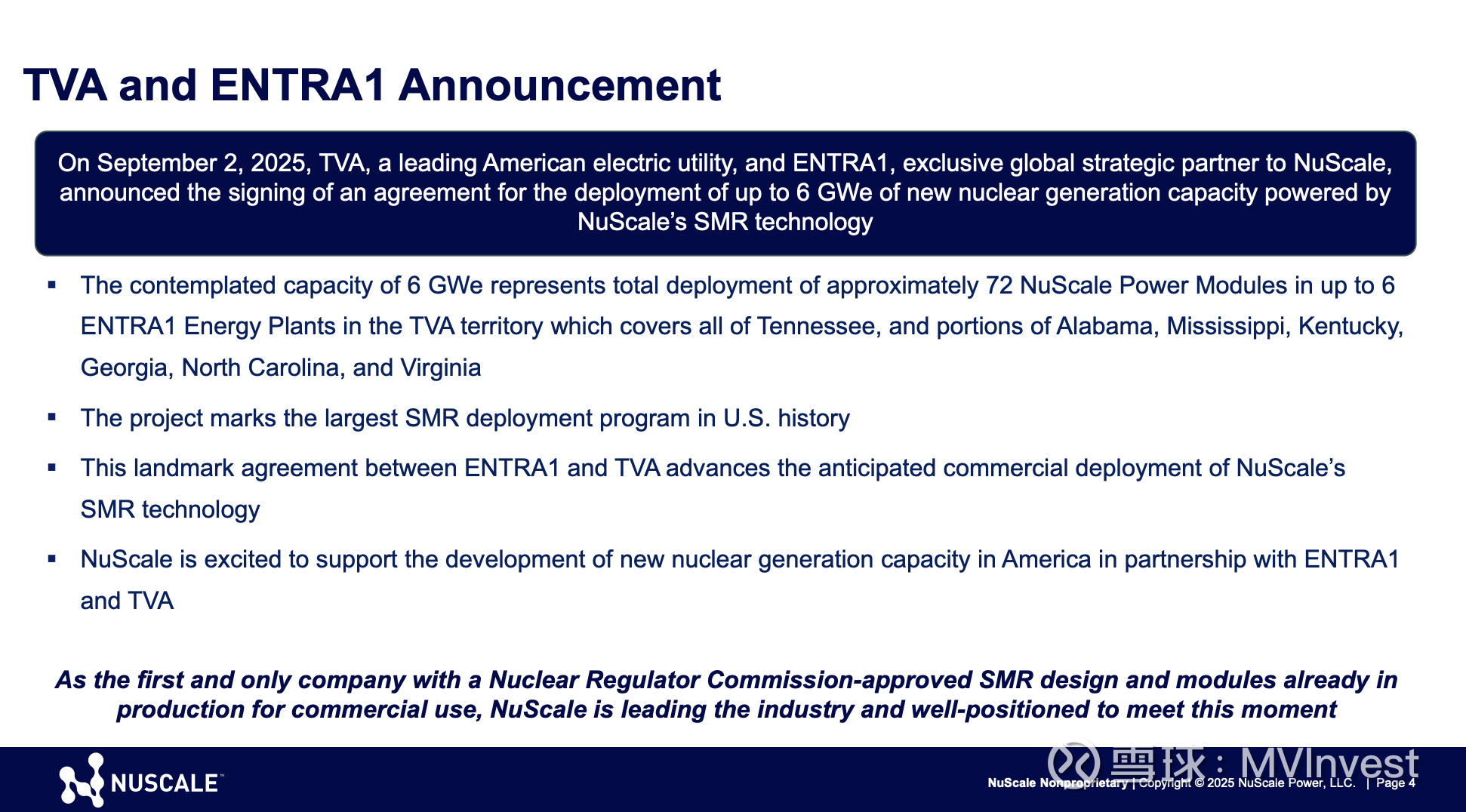 – TVA 与 ENTRA1 正推进电力购售协议(PPA)签署,NuScale 预计 2025 年底前 达成确定性协议。