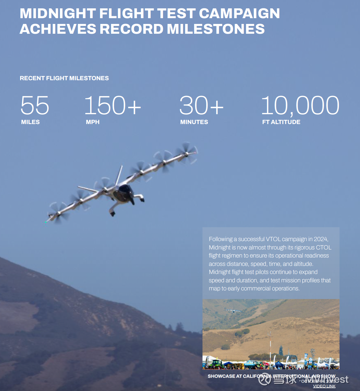 首席技术官 Thomas Muniz 报告称,Midnight 飞机近期试飞取得多项关键里程碑: