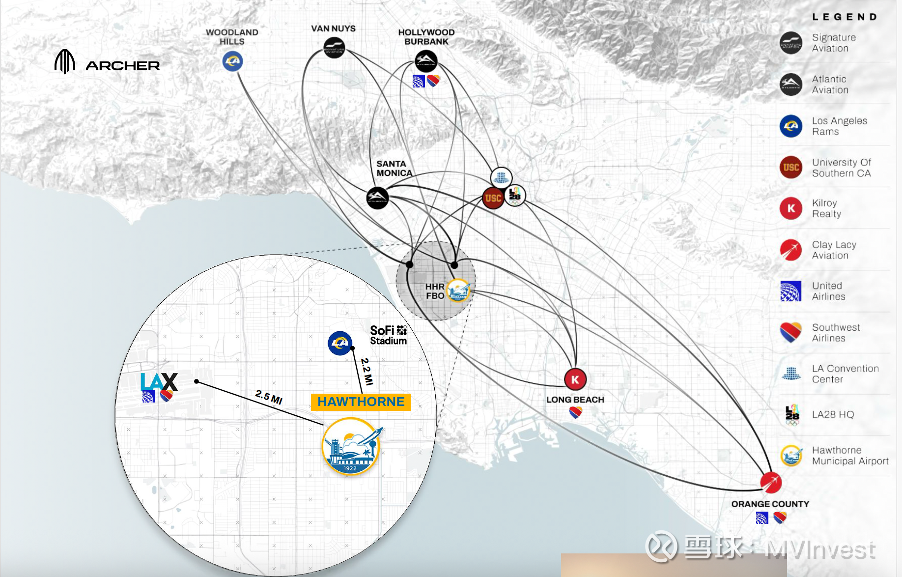 Archer 已签署具有约束力的协议,以收购位于洛杉矶的 Hawthorne Airport(霍桑机场) 控制权。Goldstein 将此称为“千载难逢的机会”,表示公司计划将其打造成“洛杉矶最具战略位置的机场之一”,作为在 2028年洛杉矶奥运会前后 的空中出租车枢纽,并作为公司正在开发的 人工智能技术试验场。