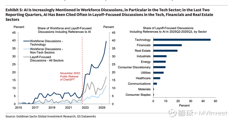 $高盛(GS)$ 正在提醒:从企业管理层的说法来看,与 AI 相关的裁员迹象正从科技行业扩散到其他领域。