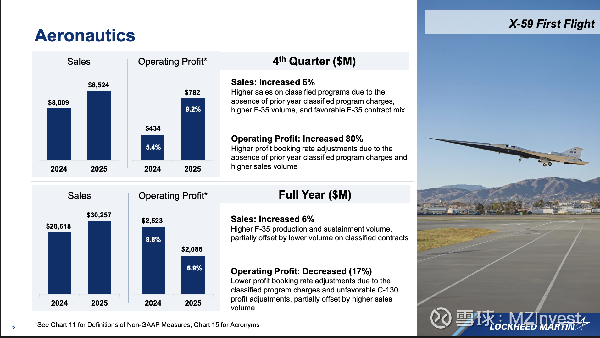 – 航空部门 (Aeronautics): 预计低个位数增长,“臭鼬工厂”和 F-35 维持业务有两位数增长潜力。F-35 产量预计保持在每年 156 架。