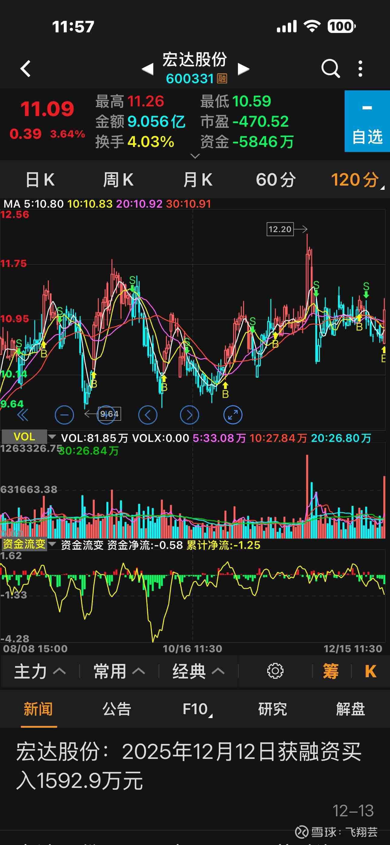 $宏达股份(SH600331)$ 宏达股份应该是控了盘的股票,前两天该涨不涨,今天该跌不跌,今天一上午弄出来比一天成交量还大的交易量,只比涨停那天上午的交易量小一些,其实主力如果洗盘今天下跌没有毛病一定会有不坚定的人卖出,当然肯定也有人想逢低买入,比如我,可是他逆巿拉升,那么今天散户卖出的一定比买入的多,那么今天谁买了谁卖了呢?
