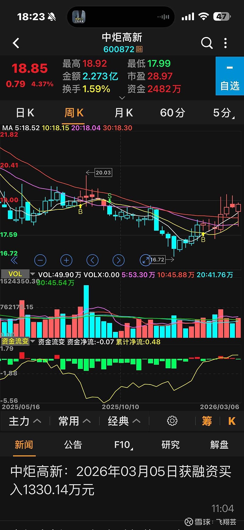 $中炬高新(SH600872)$ 中炬高新今天收出近半年多的最大的阳线,周线级别形态有所走好,应该引起重视!万物皆周期!不管世界如何变化人总是要吃饭的,周期多会儿能转过来不好说,但是现在位置是周朝底部毋庸置疑,而且大概率是右侧了,有人总喜欢问我,我投资有什么诀窍?大家都不看动东西我喜欢多看看!这就是诀窍之一!