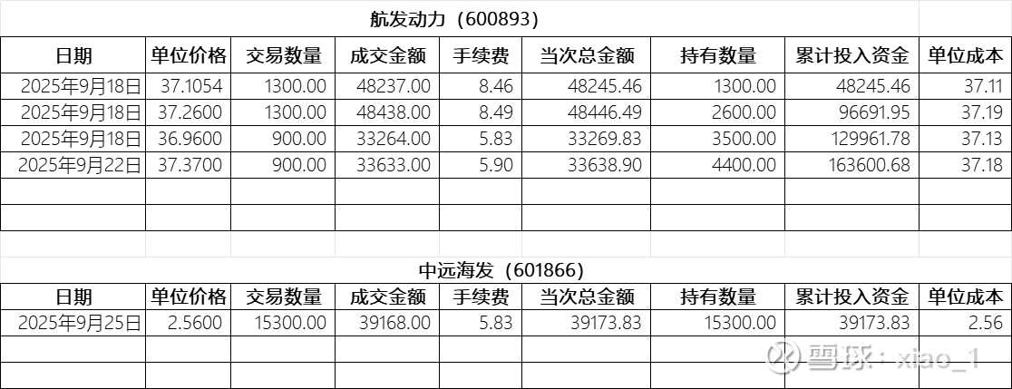 9月18日开始买入航发动力 600893,截止到目前一共买了4笔,成交4400股,投入16.36万元,平均成本37.18元。
