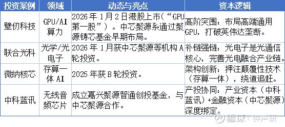 中芯聚源系近期动作频频,主要集中在AI算力、半导体设备、光电子等高景气赛道: