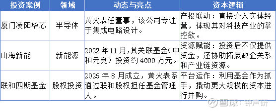黄火表系的投资逻辑不同于纯财务投资,也不同于纯产业投资,而是“产业资源+金融杠杆”的混合体:
