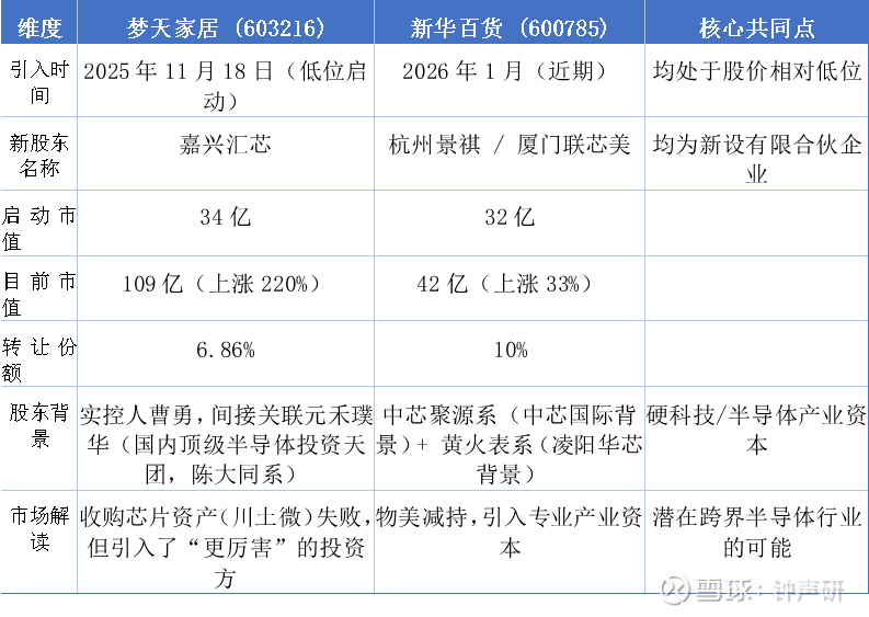 梦天家居在2025年底走出了一条与新华百货目前极其相似的路径:“跨界半导体传闻 + 顶级产业资本入股 + 短期暴涨 + 巨大分歧”。股价反应也很积极,引入投资方至今股价上涨超过200%。